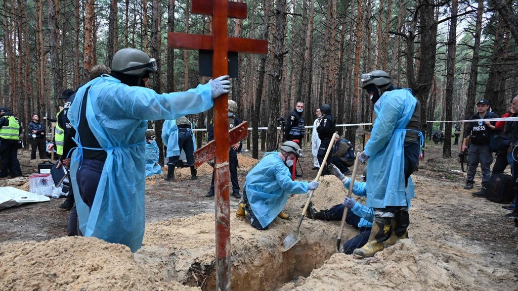 গত, বৃহস্পতিবার (১৫ সেপ্টেম্বর) খারকিভের ইজিয়াম শহরে গণকবরের সন্ধান পায় ইউক্রেনীয় বাহিনী। রুশ সেনারা শহরটি ছেড়ে যাওয়ার পর সন্ধান মেলে ওই গণকবরের।