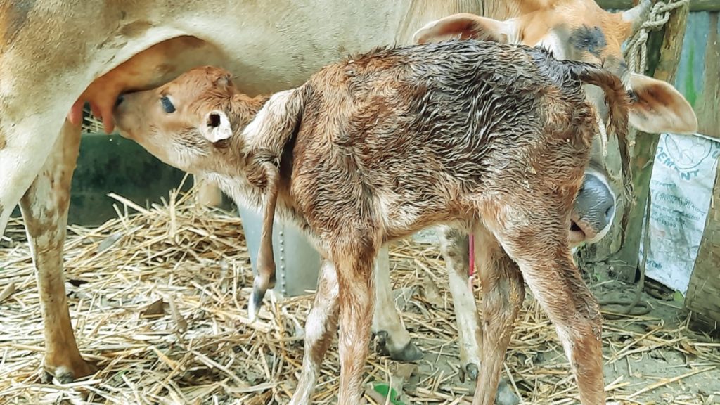গরুর মালিক সামছুজ্জামান শাহিন জানান, আজ দুপুরে আমার একটি গাভী বাছুর জন্ম দেয়। সদ্য জন্ম নেয়া বাছুরটির পাঁচটি পা রয়েছে। চারটি পা ঠিক জায়গায় থাকলেও ঘাড়ের উপর একটি অতিরিক্ত পা দেখা যায় বাছুরটির। তিনি জানান, পাঁচ পা থাকার পরেও বাছুরটি সুস্থ ও স্বাভাবিকভাবে বেড়ে উঠতে পারবে বলে জানিয়েছেন চিকিৎসকরা।