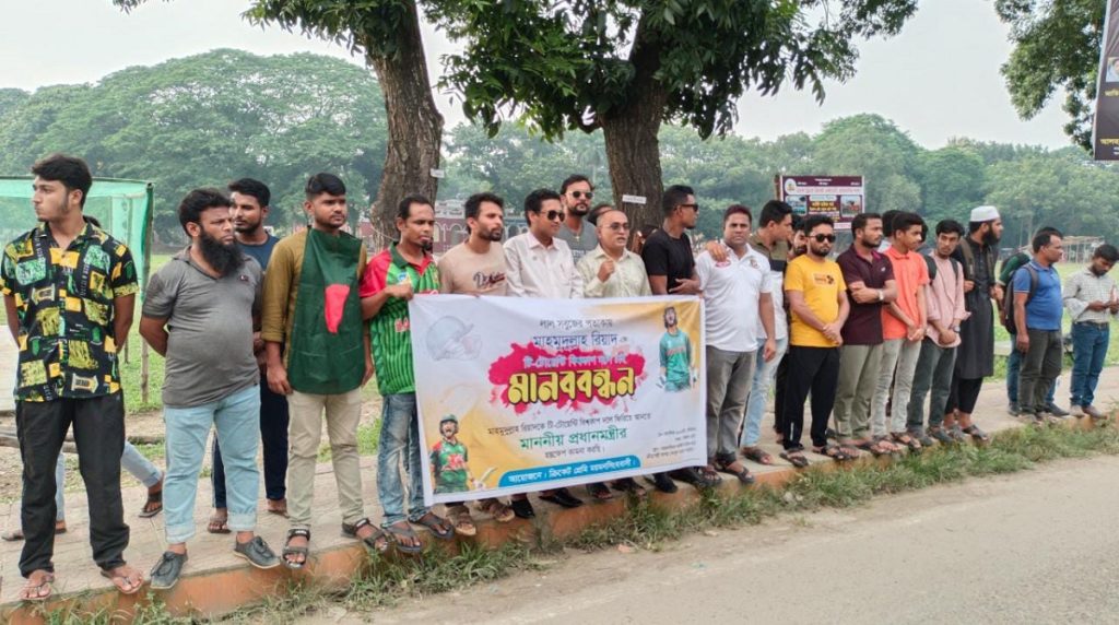 মাহমুদউল্লাহ রিয়াদকে টি-টোয়েন্টি বিশ্বকাপ দলে অন্তর্ভুক্তির দাবিতে ময়মনসিংহে মানববন্ধন অনুষ্ঠিত হয়েছে। রোববার (১৮ সেপ্টেম্বর) বিকেলে নগরীর আবুল মনসুর সড়কে ‘ক্রিকেটপ্রেমী ময়মনসিংহবাসী’র ব্যানারে এ মানববন্ধন করে বিভিন্ন শ্রেণি ও পেশার মানুষ।