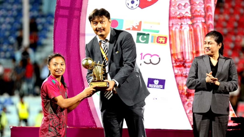 প্রসঙ্গত, সদ্য সমাপ্ত নারী সাফ চ্যাম্পিয়নশিপে সেরা গোলরক্ষকের স্বীকৃতি পেয়েছেন রাঙামাটির নানিয়ারচরের বাসিন্দা বাংলাদেশ নারী ফুটবল দলের গোলরক্ষক রূপনা। এর আগে, গত সোমবার (১৯ সেপ্টেম্বর) কাঠমান্ডুর দশরথ রঙ্গশালা স্টেডিয়ামে স্বাগতিক নেপালকে ৩-১ গোলে হারিয়ে নারী সাফ চ্যাম্পিয়নশিপের ৬ষ্ঠ আসরের শিরোপা জিতে নেয় বাংলাদেশ নারী ফুটবল দল। নেপালের বিপক্ষে ফাইনাল বাদে পুরো আসরে ক্লিনশিট ছিল বাংলাদেশের, যার সিংহভাগ ভূমিকাই গোলরক্ষক রুপনা চাকমার। আর এজন্যই এবারের নারী সাফ চ্যাম্পিয়নশিপের সেরা গোলরক্ষকের সম্মাননাও উঠেছে তারই হাতে।