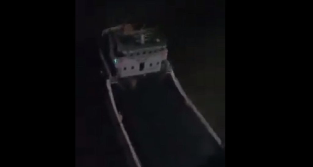 ছড়িয়ে পড়া ১ মিনিট ১৩ সেকেন্ডের এই ভিডিওতে দেখা যায়, রাতে একটি মালবোঝাই কার্গো জাহাজ দ্রুত গতিতে সেতুর পিলারের দিকে এগিয়ে আসছে। এ সময় সেতুর উপরে থাকা লোকজন চিৎকার করে কার্গো জাহাজের চালককে সতর্ক করার চেষ্টা করেও ব্যর্থ হয়। কার্গোটি সরাসরি এসে সেতুর একটি পিলারে সজোরে ধাক্কা দেয়। এরপর জাহাজটি দ্রুত চালিয়ে সেখান থেকে চলে যায়।