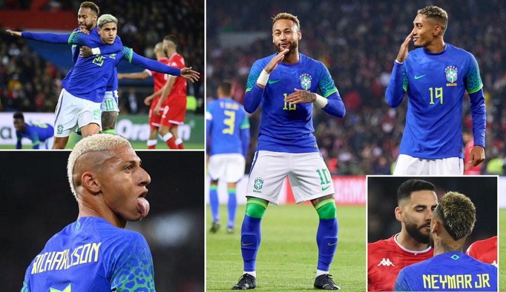 প্যারিসে ম্যাচের ১১ মিনিটে রাফিনিয়ার দুর্দান্ত হেডারে লিড নেয় সেলেসাওরা। তবে ১৮ মিনিটে ওমর তালবির গোলে সমতায় ফেরে তিউনিশিয়া। পরের গল্পটা কেবল ব্রাজিলের। ১৯ মিনিটে দলের ব্যবধান দ্বিগুণ করেন রিচার্লিসন। ২৯ মিনিটে স্পটকিক থেকে তৃতীয় গোল করে দলের সাথে মাঠের সব ব্রাজিল ভক্তদের সাম্বা নাচের উপলক্ষ্য এনে দেন নেইমার।