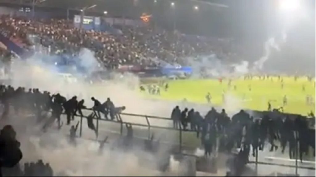 পুলিশ প্রশাসন জানায়, পূর্ব জাভা’র স্টেডিয়ামে চলছিলো ফুটবল ম্যাচ। খেলায় পার্সিবেয়া সুরাবায়া টিমের কাছে হেরে যায় আরমেয়া এফসি। তাতেই ক্ষুব্ধ হয়ে ওঠেন ভক্ত-সমর্থকরা। শেষ বাঁশি বাজার পরপরই তারা নেমে যান মাঠে। জড়িয়ে পড়েন প্রাণঘাতী সংঘাতে। পরিস্থিতি মোকাবেলায় পুলিশ টিয়ার গ্যাস নিক্ষেপ করলেও হয় হতাহতের ঘটনা।