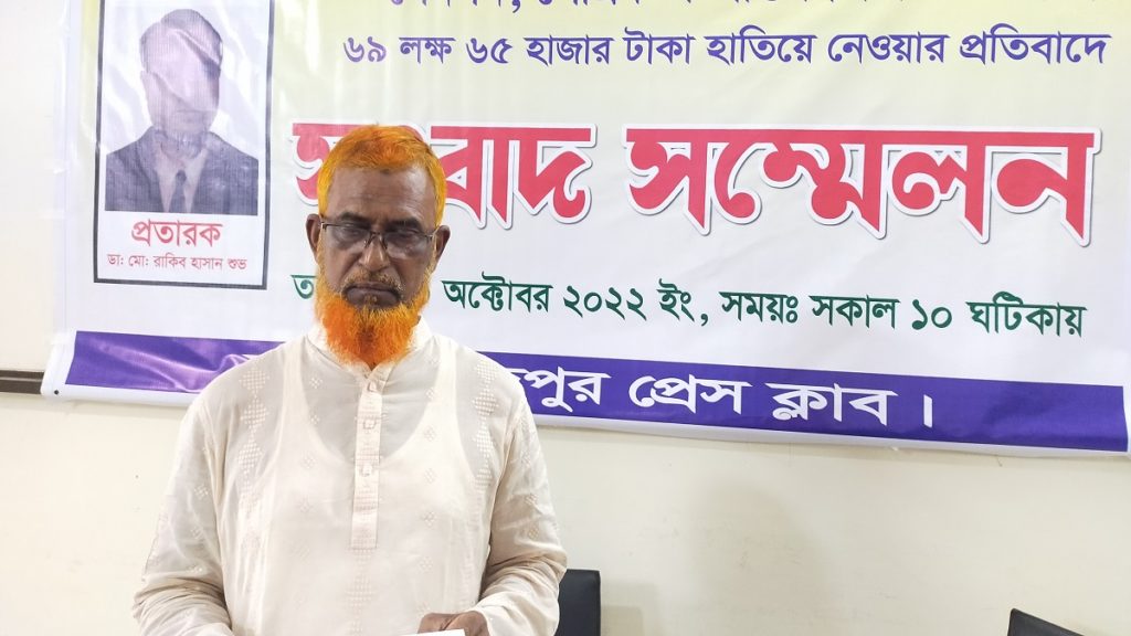 সংবাদ সম্মেলনের লিখিব বক্তব্যে আবুল কালাম তালুকদার জানান, রাকিব হাসান শুভ ওরফে হাবিবুর রহমান আমার বাসার পাশে ভাড়া থাকতেন। তিনি নিজেকে চিকিৎসক, বড় ঠিকাদার, পুলিশ ও জেলখানার রেশন সাপ্লাইয়ার পরিচয় দিতেন। অবসরপ্রাপ্ত এই বিজিবি সদস্য বলেন, রাকিব হাসান শুভ ওরফে হাবিবুর রহমান আমাকে তার ব্যবসার পরামর্শ দেন। অবসরে থাকায় আমিও তার কথায় রাজি হয়ে যাই। চুক্তিবদ্ধ হয়ে তাকে চেকের মাধ্যমে ৬৯ লক্ষ ৬৫ হাজার টাকাও দেন আবুল কালাম তালুকদার। তিনি বলেন, টাকা দেয়ার পরেই জানতে পারি সে একজন প্রতারক। তখন টাকা চাইলে ফেরত তো দেনই না বরং রাজবাড়ী আদালতে আমাদের নামে মিথ্যা মামলা দায়ের করেন। এই টাকাটা আমার জীবনের শেষ সম্বল ছিল। আমি এখন নিঃস্ব। খেয়ে না খেয়ে মানবেতর জীবন যাপন করছি।