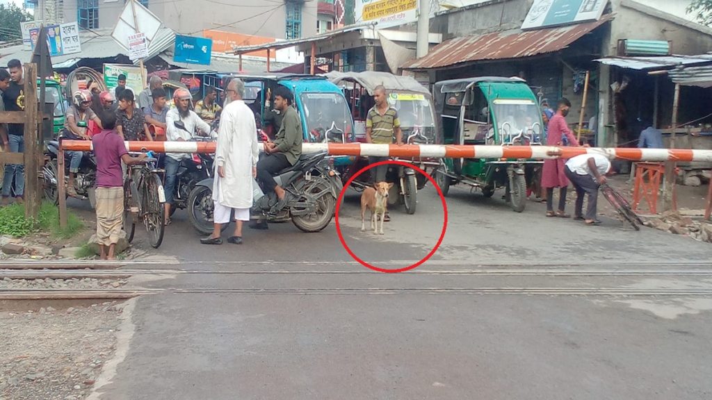 প্রত্যক্ষদর্শী নূরুল ইসলাম নূরু জানান, নাটোর রেলওয়ে স্টেশন প্লাটফর্মে রাজশাহী থেকে এসে থামে উত্তরা ট্রেন। এরপর প্লাটফর্মে দাঁড়িয়ে থাকা ঢাকাগামী অপর একটি ট্রেন রেলস্টেশন ছেড়ে যাবার অপেক্ষায় থাকে। এই কারণে প্রায় ১০ মিনিট রেলগেট বন্ধ থাকে। এই সময় আইন মেনে লোকজনের সাথে চুপচাপ দাঁড়িয়ে থাকে একটি কুকুর। কুকুরটিকে এভাবে নিয়ম মানতে দেখে তিনি বেশ কয়েকটি ছবি তোলেন। ট্রেন রেলগেট অতিক্রম করার পর গেটম্যান বার তুলে দিলে কুকুরটি বাম দিক দিয়ে রেল লাইন পার হয়ে চলে যায়।