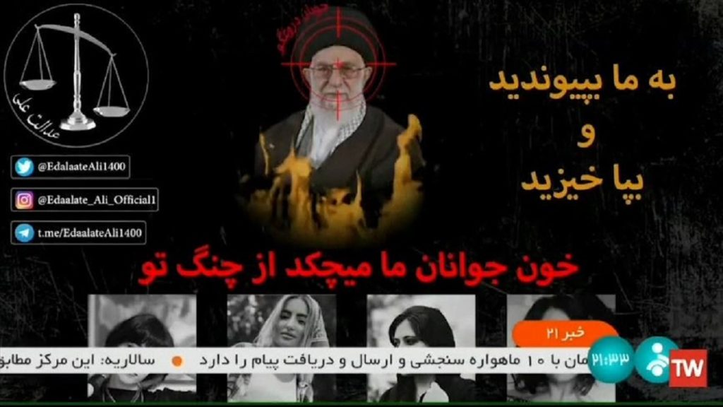 সেসময় দেশটির সর্বোচ্চ নেতা আয়াতুল্লাহ্ আলি খামেনির একটি সংবাদ সম্প্রচারিত হচ্ছিল। সাইবার হামলার মাধ্যমে স্ক্রিন দখলে নেয় হ্যাকাররা। প্রচার করে খামেনি আগুনে পুড়ছে, এমন একটি ছবি। তাতে লেখা ছিল, গণআন্দোলনে যোগ দিন, আমাদের পাশে দাঁড়ান। নিচেই ছিল আরেকটি লাইন। যার ভাষ্য, ইরানি সরকারের নখের আচড়ে রক্তাক্ত তরুণ প্রজন্ম। ছবির সাথে ব্যাকগ্রাউন্ডে বাজছিল চলমান আন্দোলনের সবচেয়ে জনপ্রিয় গান। গেলো ১৭ সেপ্টেম্বর থেকে পোশাকের স্বাধীনতার দাবিতে উত্তাল ইরান।