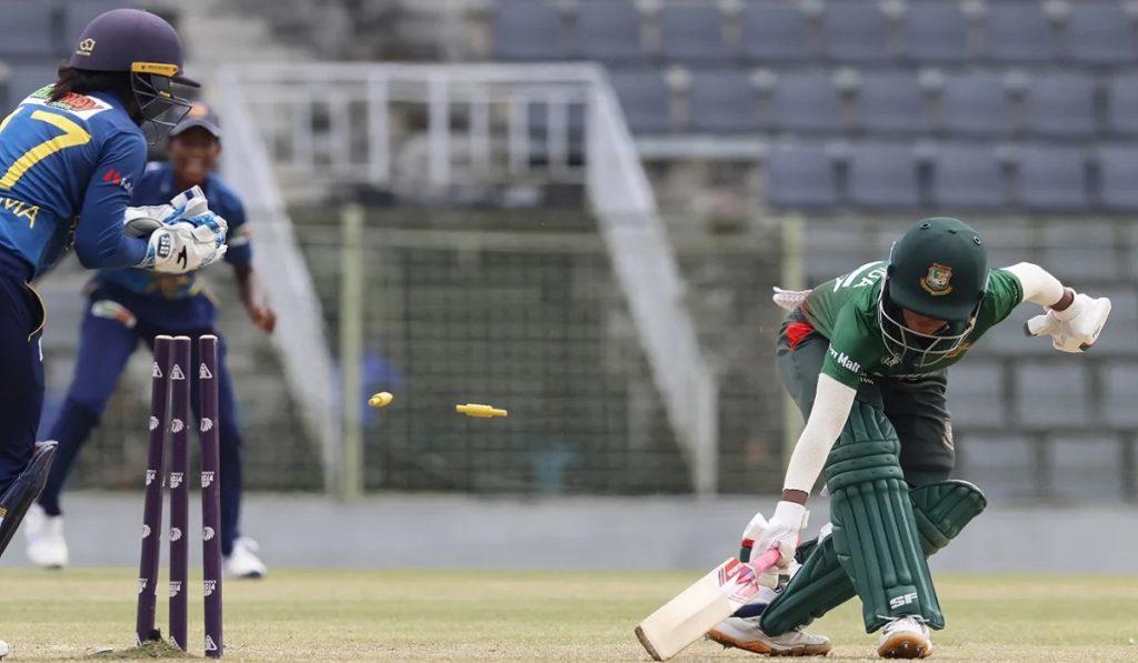 নারী এশিয়া কাপে বৃষ্টি আইনে শ্রীলঙ্কার কাছে ৩ রানে হেরে শেষ চারের সমীকরণ জটিল করে তুলেছে বাংলাদেশ। বৃষ্টি বিঘ্নিত ম্যাচে জয়ের জন্য ৭ ওভারে ৪১ রানের লক্ষ্য দাঁড়ায় বাংলাদেশের সামনে। জবাবে নির্ধারিত ওভারে ৭ উইকেট হারিয়ে ৩৭ রান করতে সমর্থ হয় নিগার সুলতানার দল।