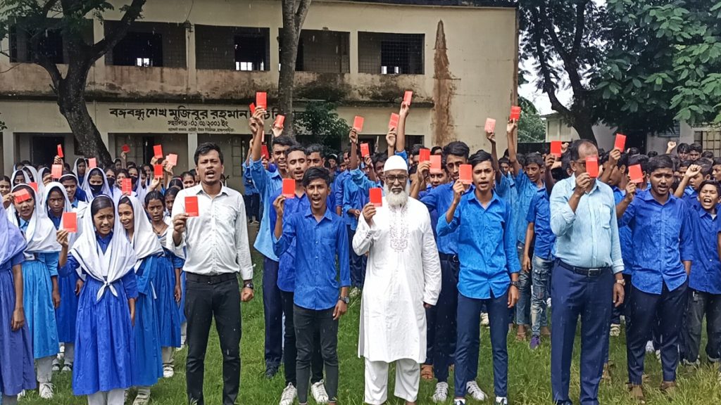 বুধবার (১২ অক্টোবর) ‘লাল সবুজ উন্নয়ন সংঘ’ নামে একটি সামাজিক সংগঠনের উদ্যোগে সদর উপজেলার নাটাই উত্তর ইউনিয়নের বঙ্গবন্ধু শেখ মুজিবুর রহমান উচ্চ বিদ্যালয়ের শিক্ষার্থীরা এই লাল কার্ড ও সবুজ কার্জ প্রদর্শন করে দেশ প্রেমের শপথ গ্রহণ করে।