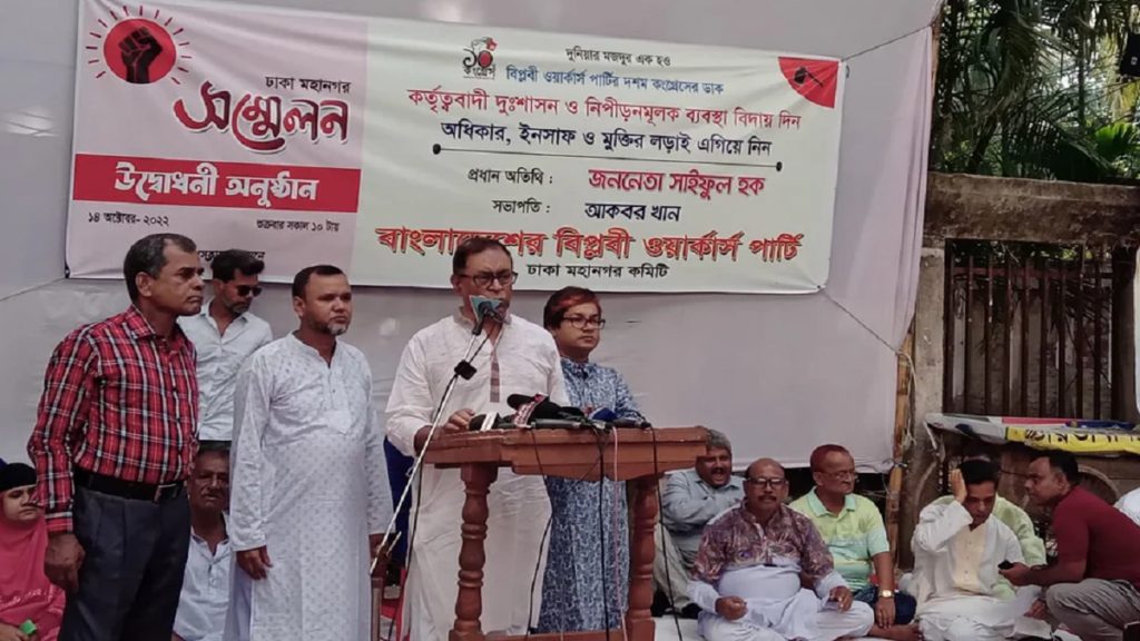 সরকারের সমালোচনা করে বিপ্লবী ওয়ার্কার্স পার্টির সাধারণ সম্পাদক সাইফুল হক বলেন, সরকার বিদেশের দোহাই দেয় নিজেদের চুরি ঢাকার জন্য। আজকে তারা রাশিয়া-ইউক্রেন যুদ্ধের কথা বলে। প্রধানমন্ত্রী ১৮ দিন বিদেশ থেকে আসার পর যে বক্তব্য দিচ্ছেন, তা শুনে মানুষের কপালে দুশ্চিন্তার ভাঁজ পড়েছে। তিনি বলেছেন, আগামী বছর নাকি দুর্ভিক্ষ হবে। প্রধানমন্ত্রী হয়ে এ কথা বললে তার ক্ষমতায় থাকার অধিকার নেই। তার বক্তব্যে সিন্ডিকেট ও মজুদদার ব্যবসায়ীরা মজুদ করবে।