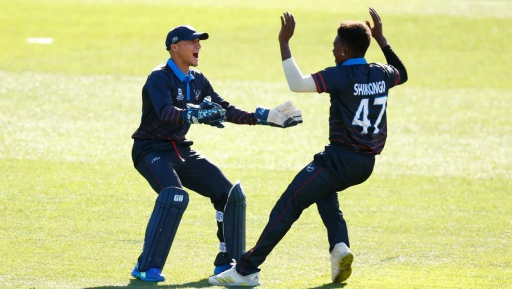 এর আগে, অস্ট্রেলিয়ার গিলংয়ের সাইমন্ডস স্টেডিয়ামে টস জিতে নামিবিয়াকে ব্যাটিংয়ের আমন্ত্রণ জানায় শ্রীলঙ্কার অধিনায়ক দাসুন শানাকা। ব্যাটিংয়ে নেমে ইনিংসের দ্বিতীয় ওভারেই শ্রীলঙ্কাকে ব্রেক থ্রু এনে দেন পেসার দুষ্মন্থ চামিরা। ৬ বলে ৩ রান করে প্রমোদ মধুশানের হাতে ক্যাচ দিয়ে ফিরে যান মাইকেল ফন লিংগেন। পরের ওভারের একেবারে শেষ বলে ব্যাটার ডিভান শানাকার হাতে ক্যাচ দেন। ১৬ রানের মাথায় পড়ে দ্বিতীয় উইকেট। এরপর নিয়মিত বিরতিতে উইকেট হারাতে থাকে নামিবিয়া। ৫ম ওভারে চামিকা করুনারত্নের লফটি ইটনের উইকেট তুলে নেন।
