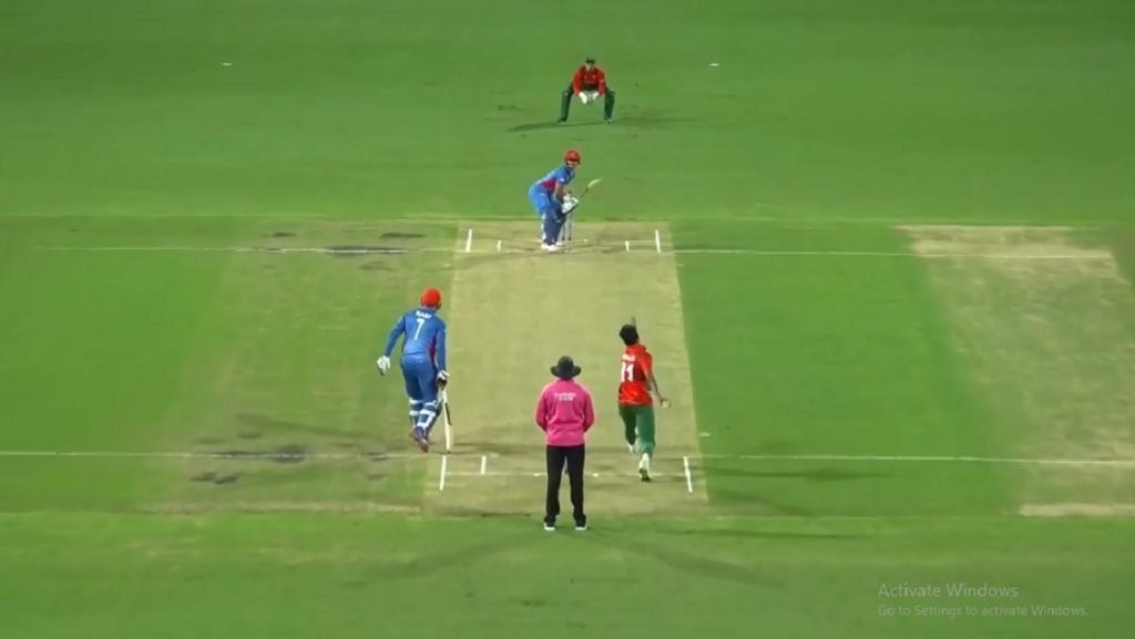 হযরতুল্লাহ জাজাই এবং রহমানুল্লাহ গুরবাজের উদ্বোধনী জুটি ভাঙেন তাসকিন আহমেদ। এরপর গুরবাজকে নিয়ে ইব্রাহিম জাদরান দ্বিতীয় উইকেট জুটিতে তোলেন ৪৩ রান। এই গুরবাজকে আউট করে এই জুটি ভাঙেন সাকিব আল হাসান। এরপর দারভিশ রাসুলির উইকেট শিকার করেন তাসকিন। এরপর ইব্রাহিম ও নাজিবুল্লাহ- এই দুই জাদরানকে সাজঘরে ফেরান এই ম্যাচে বাংলাদেশের সেরা বোলার হাসান মাহমুদ।