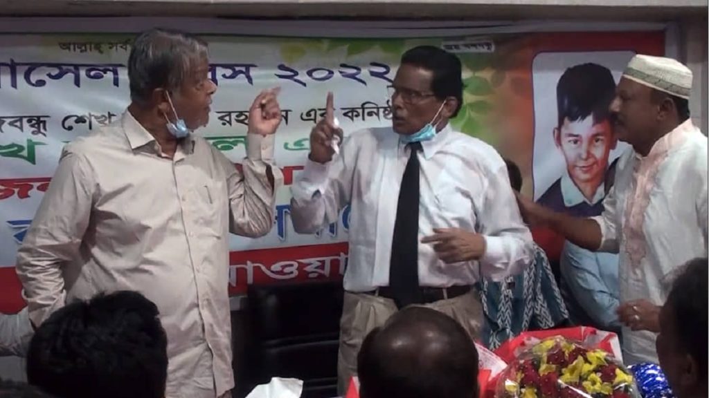 এরপর বক্তব্যের মধ্যে জেলা পরিষদ নির্বাচনের সিংগাইর উপজেলা নির্বাচনের ফলাফল তুলে ধরতেই জেলা আওয়ামী লীগের সাধারণ সম্পাদক আব্দুস সালাম গোলাম মহীউদ্দীনকে নির্বাচন নিয়ে কথা বলতে নিষেধ করেন। বক্তব্যের মধ্যেই আব্দুস সালামকে চুপ করতে বলেন মহীউদ্দীন। এরপর তাদের মধ্যে বাক-বিতণ্ডা এবং হট্টগোলের সৃষ্টি হয়।