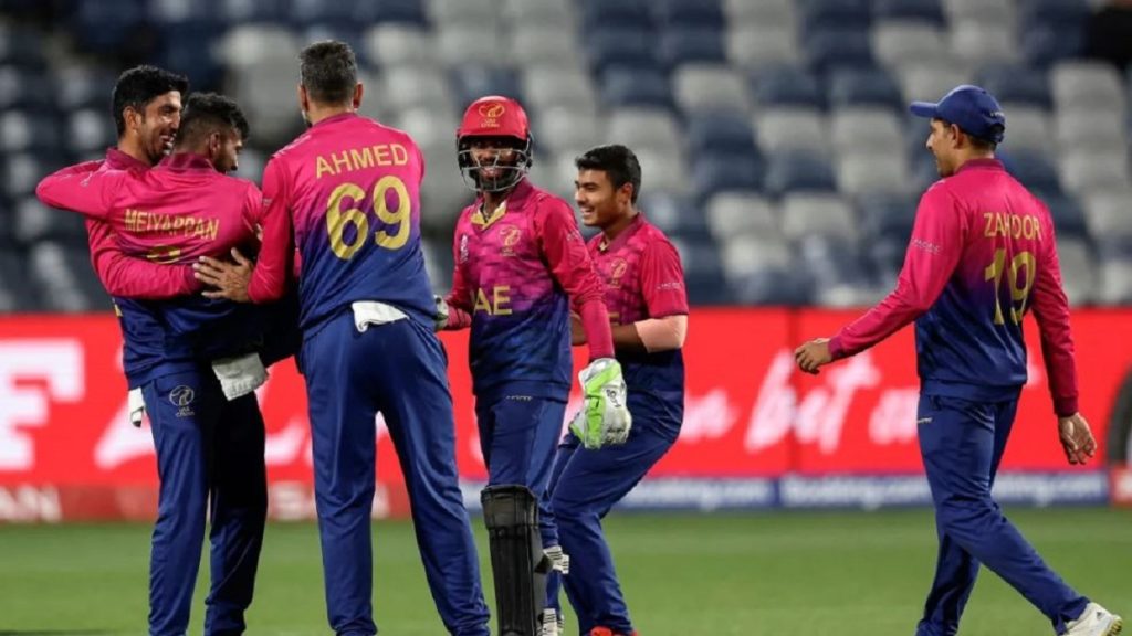 জয়ের জন্য শেষ তিন বলে দরকার ছিল ১০ রান। এই সময় ছক্কা হাঁকাতে গিয়ে বাউন্ডারিতে ক্যাচ হন ওয়াইজ। শেষ হয় নামিবিয়ার স্বপ্ন। এর আগে ব্যাট করতে নেমে ৩ উইকেট হারিয়ে ১৪৮ রান সংগ্রহ করে আরব আমিরাত।