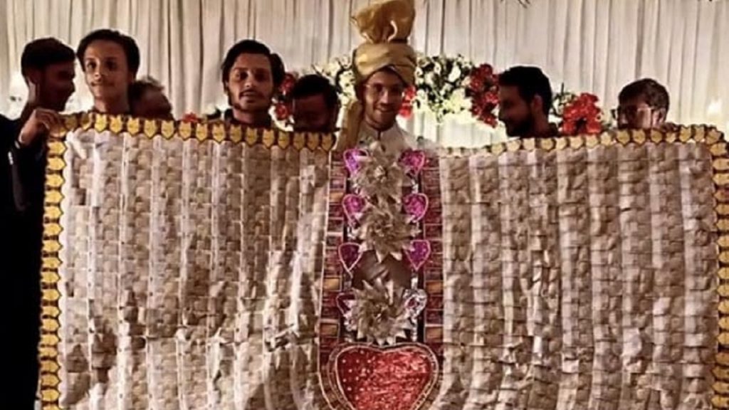 ভারতীয় সংবাদমাধ্যম এনডিটিভির এক প্রতিবেদনে বলা হয়, সম্প্রতি সামাজিক যোগাযোগমাধ্যমে একটি ভিডিও ভাইরাল হয়। ভিডিওটিতে দেখা যায়, পাকিস্তানের মুদ্রা রুপির নোট দিয়ে তৈরি একটি বড় আকারের মালা পরানো হয়। মালাটির আকার এতটাই বড় যে, তা ধরে রাখতে বরকে তার বন্ধুদের সহায়তা নিতে হয়েছে। এছাড়া, মালার দৈর্ঘ্য-প্রস্থ এতটাই বেশি যে, বর মালার পেছনে প্রায় পুরোটাই আড়াল হয়ে রয়েছেন।