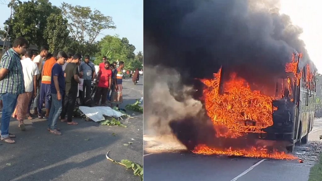 যশোর-খুলনা মহাসড়কের চাউলিয়ায় একটি যাত্রীবাহী বাস মোটরসাইকেল আরোহীকে চাপা দিয়ে পালিয়ে যাওয়ার সময় তাতে আগুন ধরে যায়। এই ঘটনায় এক বিজিবির সদস্য নিহত হয়েছেন।