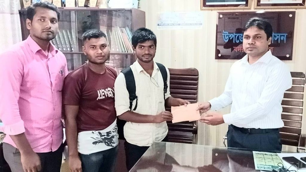বৃহস্পতিবার (১০ নভেম্বর) দুপুরে মামুনের হাতে ভর্তির টাকা তুলে দেন বদরগঞ্জের ইউএনও।
