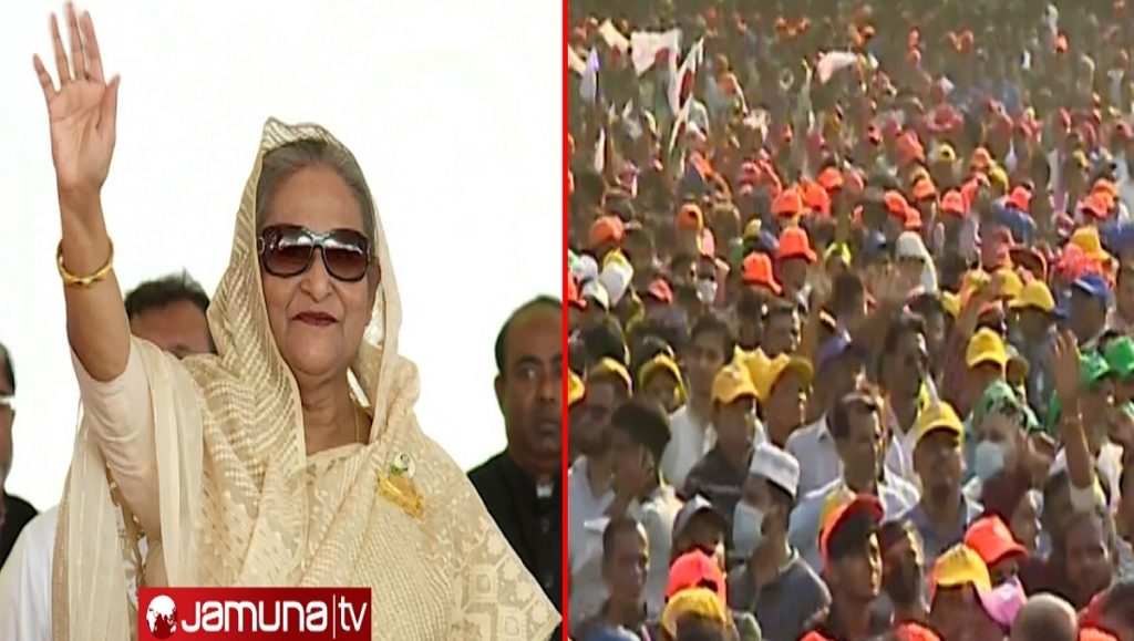 প্রধানমন্ত্রী বলেন, সরকার গঠন করে উন্নয়নের কাজ করে যাচ্ছি। সারাদেশের মানুষ উন্নয়নের সুফল পাচ্ছে। অনেকে সমালোচনা করছে উন্নয়ন নাকি চোখে দেখে না। তারা মোবাইল ফোন ব্যবহার করছে। ইন্টারনেট ব্যবহার করছে। যেটা আওয়ামী লীগ সরকার দিয়েছে। যাদের নেতাই মানি লন্ডারিং, অবৈধ সম্পদের মামলার আসামী; তাদের মুখে আওয়ামী লীগের সমালোচনা মানায় না।