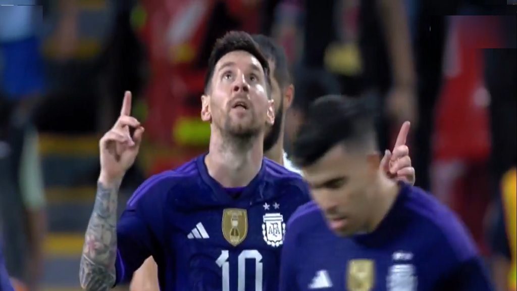 গোলের এই মিছিলে কেন বাদ থাকবেন ফুটবল জাদুকর লিওনেল মেসি। খেলার ৪৪ মিনিটের সময় নিজেও আরব আমিরাতের জালে বল জড়িয়ে দলকে হাফ টাইমের আগেই ১ হালি গোলের লিড এনে দেন তিনি।