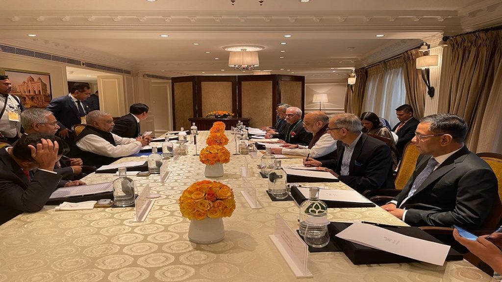 ভারতের দিল্লিতে তাজ প্যালেসে সৌজন্য সাক্ষাতে মিলিত হয়েছেন বাংলাদেশের স্বরাষ্ট্রমন্ত্রী আসাদুজ্জামান খান এমপি ও ভারতের কেন্দ্রীয় স্বরাষ্ট্রমন্ত্রী অমিত শাহ।