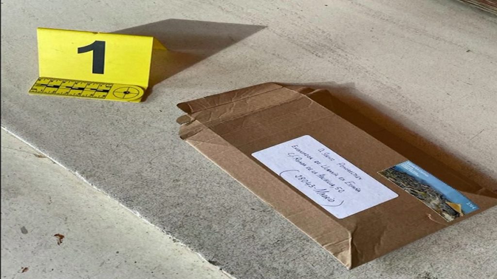 মাদ্রিদে চিঠি খোলার সময় আহত হয়েছেন ইউক্রেনীয় দূতাবাসের এক কর্মকর্তাও। তবে পূর্ব-সতর্কতা থাকায় সন্দেহজনক খামটি চিহ্নিত করতে পেরেছে মার্কিন দূতাবাস। পরে বিশেষ বাহিনীর সহযোগিতায় সেটি নিষ্ক্রিয় করা হয়।