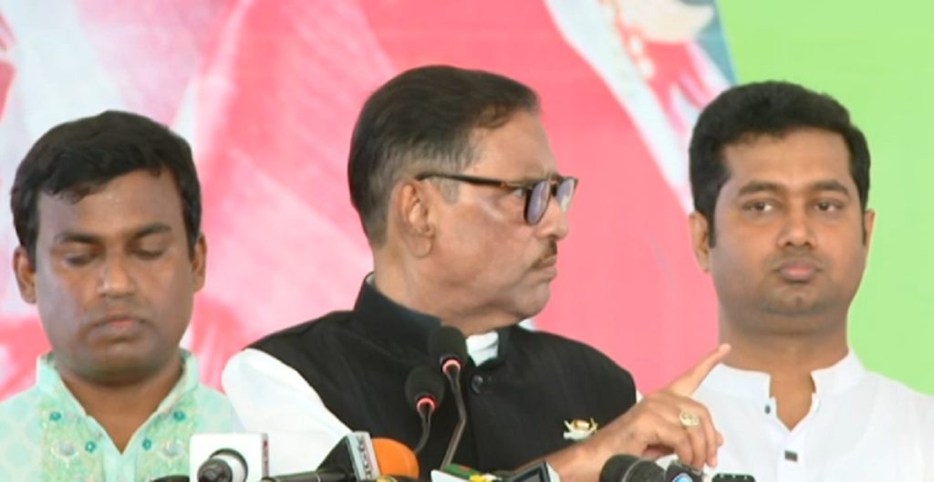 ওবায়দুল কাদেরের বক্তব্য শুরুর পরই একই সাথে মঞ্চ ত্যাগ করেন জাহাঙ্গীর কবির নানক, বাহাউদ্দিন নাছিম এবং আব্দুর রহমান।