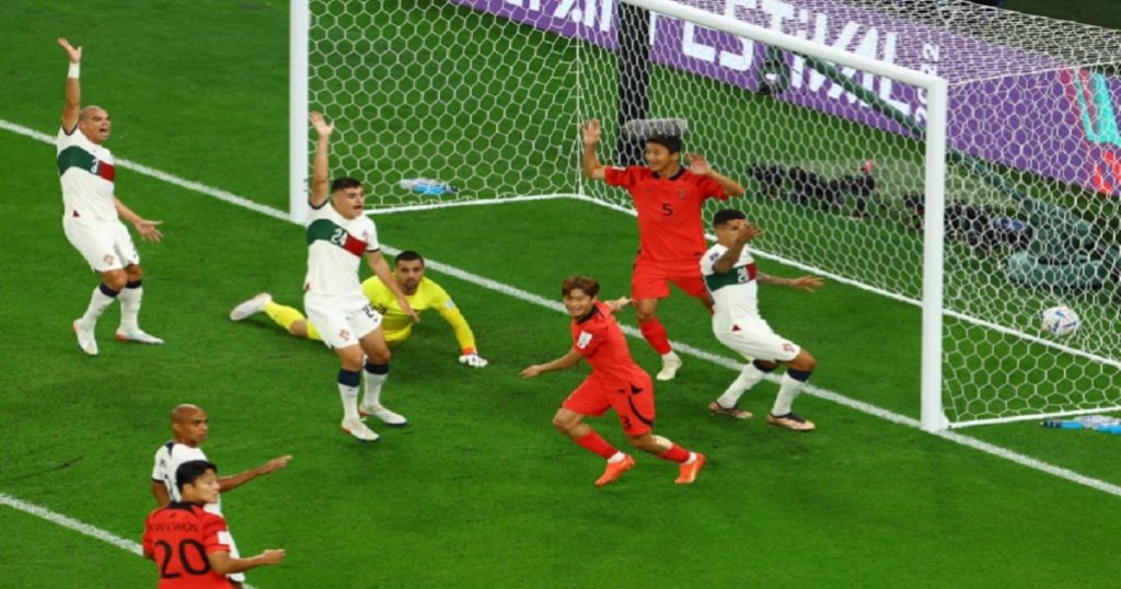 ম্যাচের শুরুতে পিছিয়ে পড়লেও ২৭ মিনিটে সমতা ফিরলো দক্ষিণ কোরিয়া। এ সময় বামদিক থেকে উড়ে আসা বল রোনালদোর পিঠে লেগে গোললাইনের সামনে পড়ে। সেটাতে কিম ইয়ং গন টোকা দিয়ে বল জালে জড়ান।
