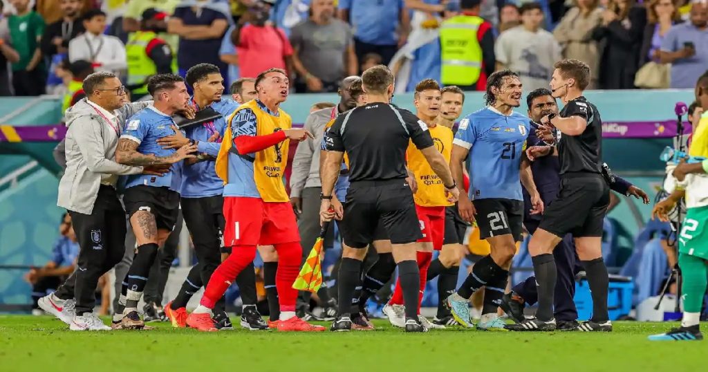 ম্যাচের ১৬ মিনিটে জর্ডান আইয়ুর শট ভালোভাবে সেইভ করতে পারেননি গোলরক্ষক রচেট। তার হাত থেকে বেরিয়ে যাওয়া বল আয়ত্তে নিতে দৌড়ে যান কুদুস। বল দখলে নিতে লাফ দেন রচেট। উরুগুয়ের গোলরক্ষকের চ্যালেঞ্জে পড়ে যান কুদুস। ভিএআরে দেখে পানল্টির বাঁশি বাজান রেফারি। আর তা থেকে আন্দ্রে আইয়ুর নেয়া দুর্বল স্পটকিক রুখে উরুগুয়েকে লড়াইয়ে টিকিয়ে রাখেন রচেট।