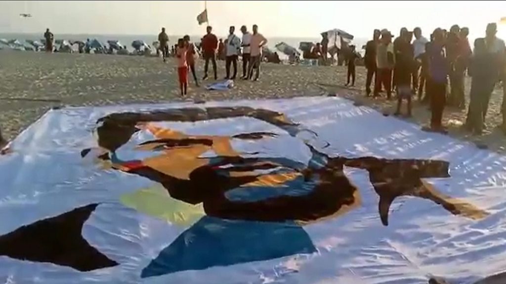কক্সবাজার সমুদ্র সৈকতে প্রদর্শিত হয়েছে রঙ তুলিতে আঁকা লিওনেল মেসির সুবিশাল একটি চিত্র। যেটির দৈর্ঘ্য ও প্রস্থ যথাক্রমে ৩৪ ও ২২ ফুট। হাতে আঁকা ছবির মধ্যে এটিই মেসির সবচেয়ে বড় চিত্র বলে দাবি করেছেন আয়োজকরা। সাদা কাপড়ে অ্যাক্রলিক রঙ দিয়ে আঁকা এই ছবিটিতে আকাশের সাতটি রঙ ব্যবহার করেছেন শিল্পী।
