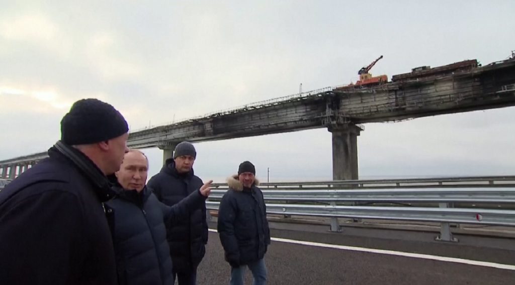 সোমবার (৫ ডিসেম্বর) স্থানীয় সময় বিকালে কার্চ সেতুর বিস্ফোরণের সেই জায়গাটি এবং মেরামতের কাজ দেখতে যান তিনি।