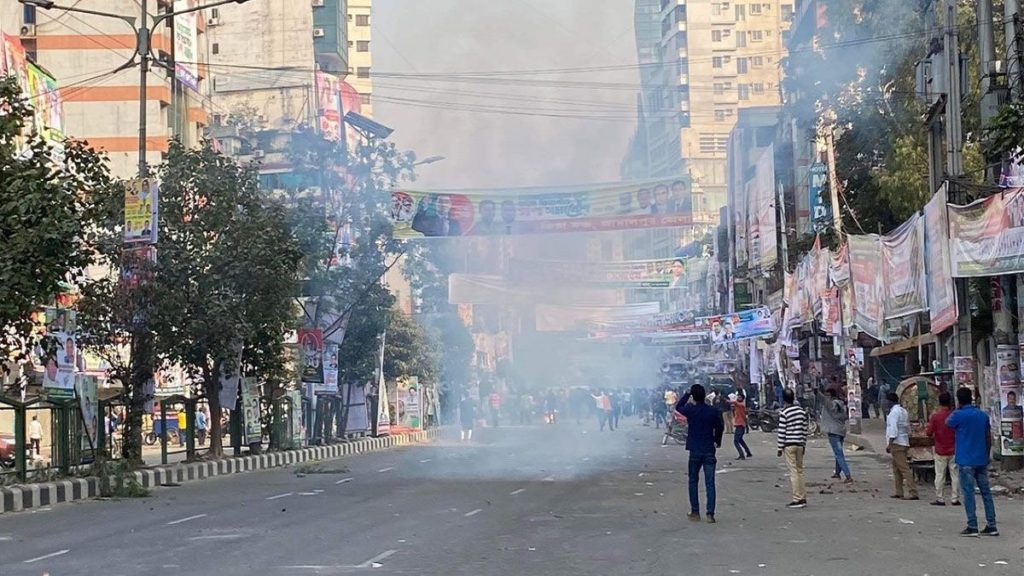 বুধবার (৭ ডিসেম্বর) বিকেল ৩টার দিকে এ সংঘর্ষ হয়। সংঘর্ষ শুরুর আগে বিএনপি কার্যালয়ের সামনে নেতাকর্মীরা অবস্থান নিয়ে স্লোগান দেন। পুলিশও তখন সতর্ক অবস্থানে ছিল। এক পর্যায়ে সেখানে জলকামান ও প্রিজন ভ্যান অবস্থান নেয়। বিকেল সাড়ে তিনটার দিকে পুলিশের সোয়াত টিমও পৌঁছায় সেখানে।