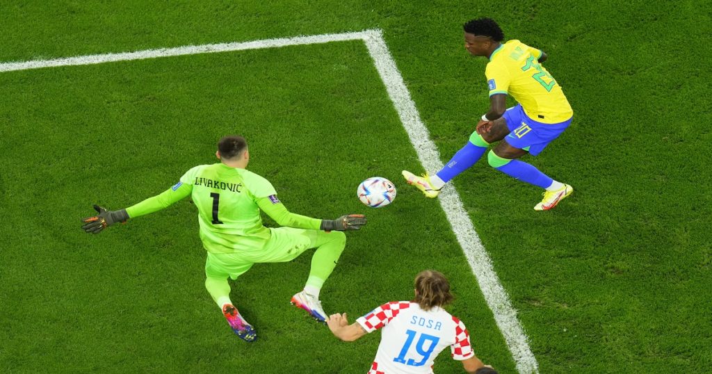 এরপরেও ব্রাজিলের রক্ষণে বেশ কয়েকবার আঘাত হানে মদ্রিচের দল। কিন্তু সেলেসাওদের বিশ্বসেরা রক্ষণব্যুহ ভেদ করে পোস্টে কোনো শট রাখতে ব্যর্থ হয় পেরেসিচরা। ম্যাচের ৪২ মিনিটে ডি বক্সের বাইরে ফাউলের শিকার হন ভিনিসিয়াস। নেইমারের নেয়া সেই ফ্রি-কিক দেয়ালে হাল্কা প্রতিহত হলেও, গোলরক্ষককে ফাঁকি দিতে পারেনি।