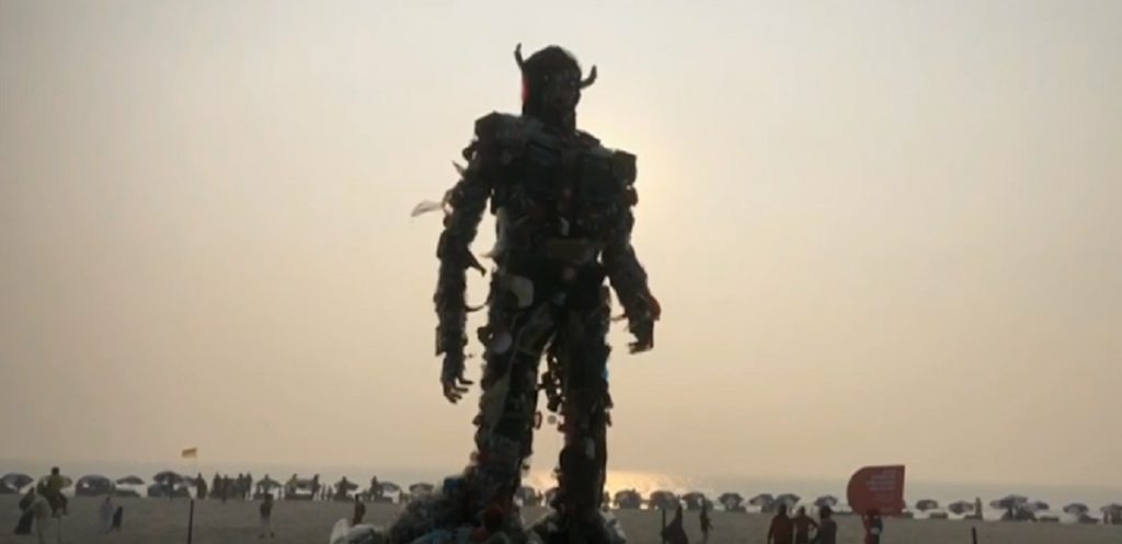 কক্সবাজার সৈকতের সুগন্ধা পয়েন্টে ৪ টন প্লাস্টিক বর্জ্য দিয়ে তৈরি করা হয়েছে ৪২ ফুট উঁচু এই ভাস্কর্য। কক্সবাজার জেলা প্রশাসন এবং ট্যুরিস্ট পুলিশের সহযোগিতায় বিদ্যানন্দ ফাউন্ডেশনের উদ্যোগে তৈরি হয়েছে এ ‘প্লাস্টিক দানব’। পুরো ভাস্কর্যটি তৈরিতে সময় লেগেছে ৭ দিন। নির্মাতাদের দাবি, এই ভাস্কর্যটি দিয়ে বোঝানোর চেষ্টা করা হয়েছে, প্লাস্টিক রিসাইকেল না করলে তা দানবের মতো বিশাল সমস্যা নিয়ে ফিরে আসবে।
