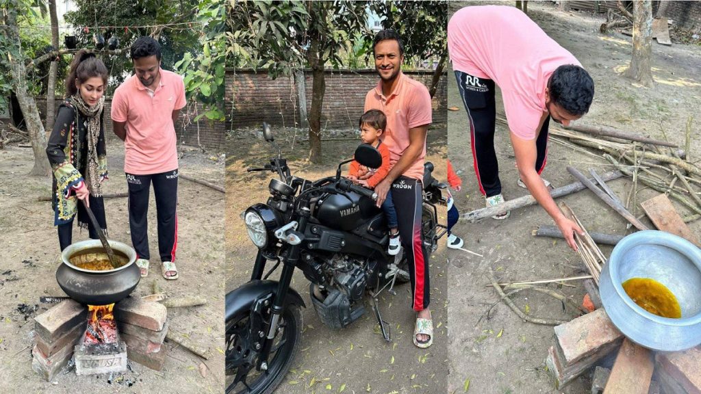 সোমবার (২৬ ডিসেম্বর) নিজের বাড়িতে পরিবার ও আত্মীয় স্বজন নিয়ে আয়োজন করেছেন পিকনিকের। পিকনিক উপলক্ষে গতকাল রাত থেকেই সাকিবদের বাড়িতে ছিল উৎসব মুখর পরিবেশ। বাড়ির চারপাশে করা হয়েছে আলোকসজ্জা। আর, সোমবার দুপুরে বাড়ির সামনের উঠানে ইট দিয়ে চুলা তৈরি করে সেখানে গরুর মাংস ভুনা রান্না করেছেন সাকিবের স্ত্রী উম্মে আহমেদ শিশির। এ সময় সাকিবকেও দেখা যায় স্ত্রীকে রান্নায় সাহায্য করতে।
