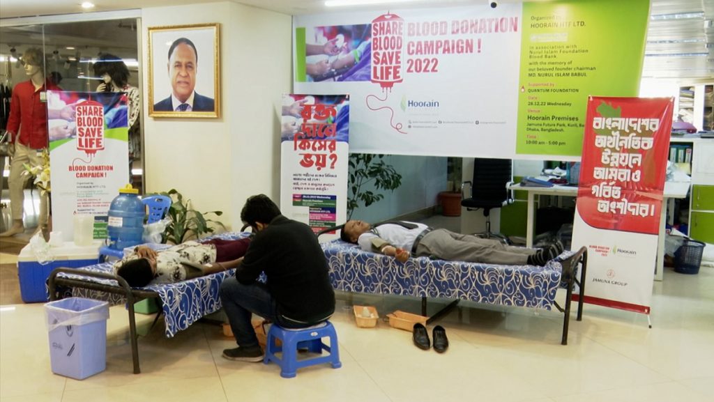 যমুনা গ্রুপের প্রয়াত চেয়ারম্যান বীর মুক্তিযোদ্ধা নুরুল ইসলামের স্মরণে হুরাইন এইচটিএফ লিমিটেড কর্তৃক আয়োজিত এবং ‘নুরুল ইসলাম ফাউন্ডেশনে’র ব্লাড ব্যাংক প্রকল্পের সহযোগিতায় দিনব্যাপী স্বেচ্ছায় রক্তদান কর্মসূচি অনুষ্ঠিত হয়েছে। দিনব্যাপী এ মহতী কর্মকাণ্ডে যমুনা গ্রুপের প্রায় দুইশ’ কর্মকর্তা-কর্মচারী অংশ নেন। এ সময় তারা স্বেচ্ছায় রক্তদান করেন।