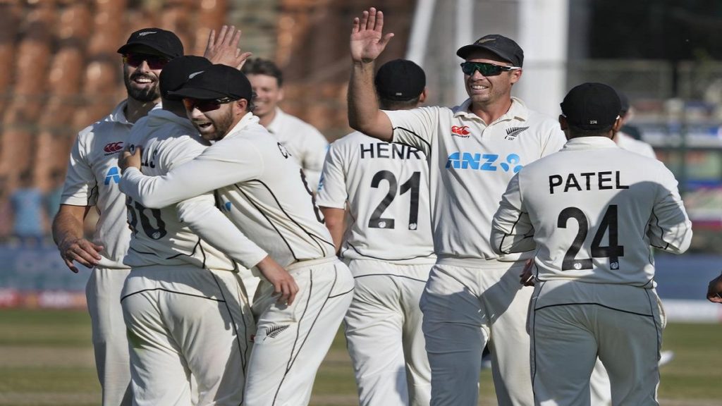 করাচি টেস্টের চতুর্থ দিন শেষে বিপাকে পাকিস্তান। জয়ের জন্য ৩১৯ রানের লক্ষ্যে খেলতে নেমে শেষ বিকেলে মাত্র ৩ ওভারের মধ্যে ওপেনার আব্দুল্লাহ শফিক ও নাইটওয়াটচম্যান মির হামজার উইকেট হারিয়েছে দলটি। এরআগে ৫ উইকেটে ২৭৭ রান করে নিজেদের দ্বিতীয় ইনিংস ঘোষণা করে কিউই’রা।