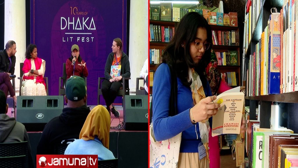 ১০ম ঢাকা লিট ফেস্ট’র দ্বিতীয় দিন ছিল আজ। শুক্রবার (৬ জানুয়ারি) ছুটির দিনে বাংলা একাডেমি প্রাঙ্গন ছিল সব বয়সী মানুষে মুখরিত। পাঠক-দর্শনার্থীরা বলছেন, বিভিন্ন দেশের সাহিত্যের সঙ্গে ইংরেজির মাধ্যমে বাংলার মানুষের পরিচয় ঘটছে এই ফেস্টের মাধ্যমে। লেখকরা বলছেন, সাহিত্যের পাঠক বাড়াতে হবে সামাজিকভাবেই।