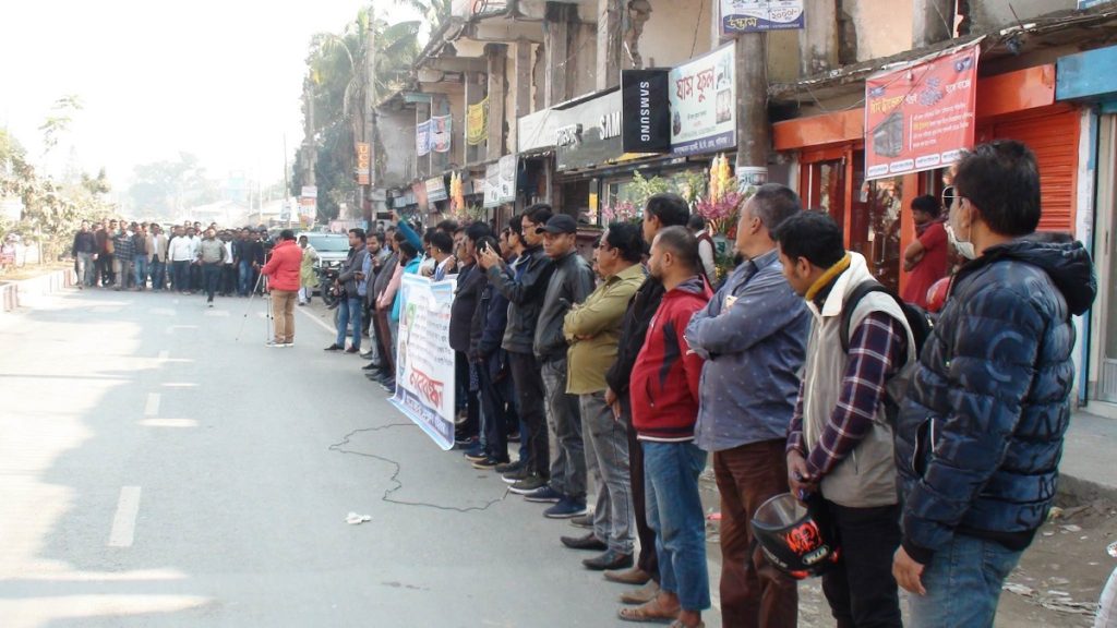 ঘণ্টাবাপী অনুষ্ঠিত এ মানববন্ধনে বক্তারা অবিলম্বে সাংবাদিকদের বিরুদ্ধে করা মিথ্যা ও হয়রানিমূলক মামলা প্রত্যাহারের দাবি জানান। এসব মামলা প্রত্যাহার না হলে ঐক্যবদ্ধভাবে আরও কঠোর কর্মসূচির হুঁশিয়ারিও দেন তারা।