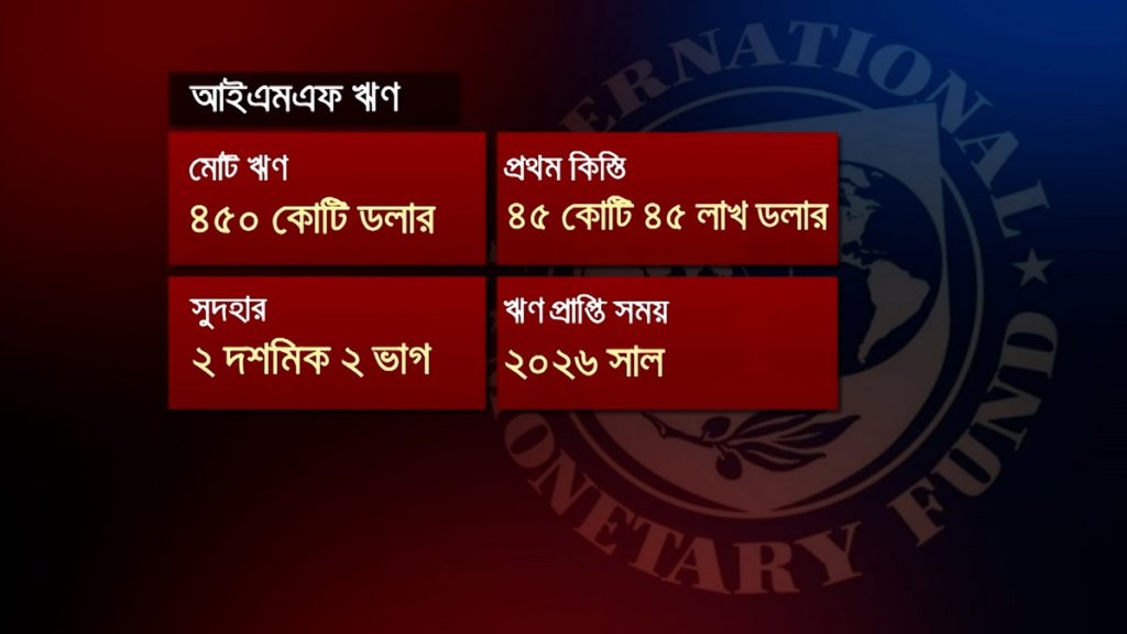 বেশ কয়েক মাস ধরেই টালমাটাল দেশের অর্থনীতি। মুদ্রা ব্যবস্থাপনায় তৈরি হয়েছে অস্থিরতা। উন্নয়ন কাজেরও লাগাম টেনে ধরা হয়েছে। আর্থিক খাতের এমন টানাপোড়েনে এগিয়ে এসেছে ঋণদাতা সংস্থা আন্তর্জাতিক মুদ্রা তহবিল (আইএমএফ)। ৪৫০ কোটি ডলারের ঋণ সহায়তা দিতে সম্মত হয়েছে আন্তর্জাতিক এই সংস্থা। কোনো সমস্যা না হলে আগামী ফেব্রুয়ারিতেই ঋণের প্রথম কিস্তির অর্থ পাবে সরকার।