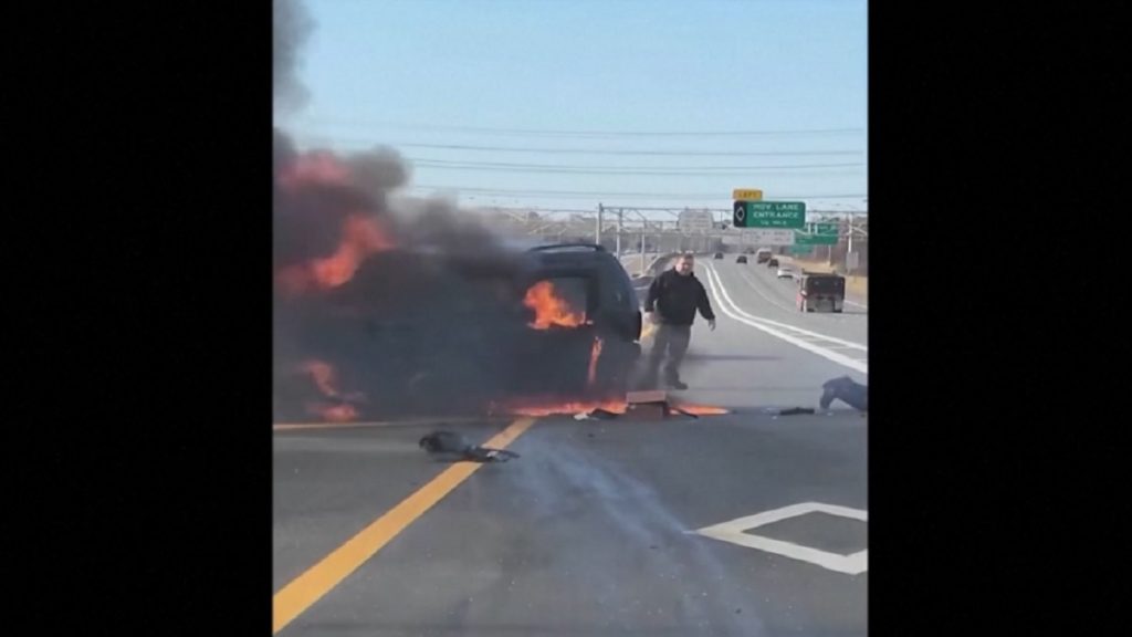যুক্তরাষ্ট্রে জ্বলন্ত গাড়ি থেকে উদ্ধার করা হয়েছে এক নারীকে। সোমবার (১৬ জানুয়ারি) নিউইয়র্কের লং আইল্যান্ড মহাসড়কে হয় এ দুর্ঘটনা। খবর রয়টার্সের।