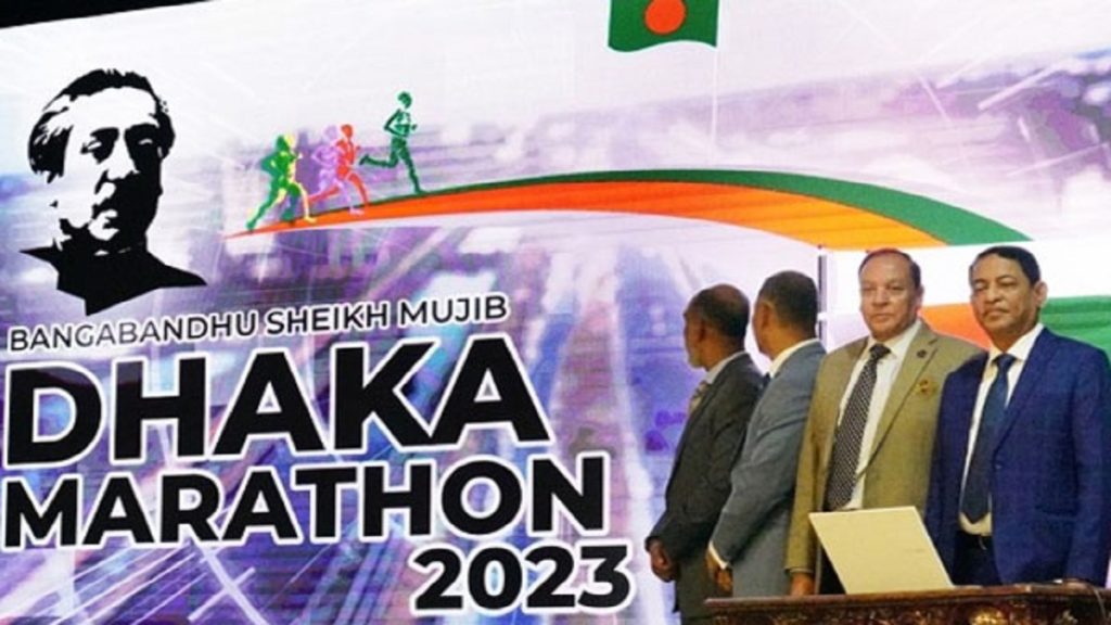 বঙ্গবন্ধুর স্বদেশ প্রত্যাবর্তন উপলক্ষ্যে বঙ্গবন্ধু শেখ মুজিব ঢাকা ম্যারাথন-২০২৩ অনুষ্ঠিত হবে শুক্রবার (২০ জানুয়ারি)। এদিন ভোর সাড়ে পাঁচটায় রাজধানীর বিআইসিসি থেকে শুরু হয়ে ৩০০ ফিট রাস্তা হয়ে কাঞ্চন ব্রিজ এর পূর্ব পর্যন্ত অতিক্রম করবে ম্যারাথন। একই রাস্তায় পুনরায় ফিরে এসে একইস্থানে শেষ হবে এটি।