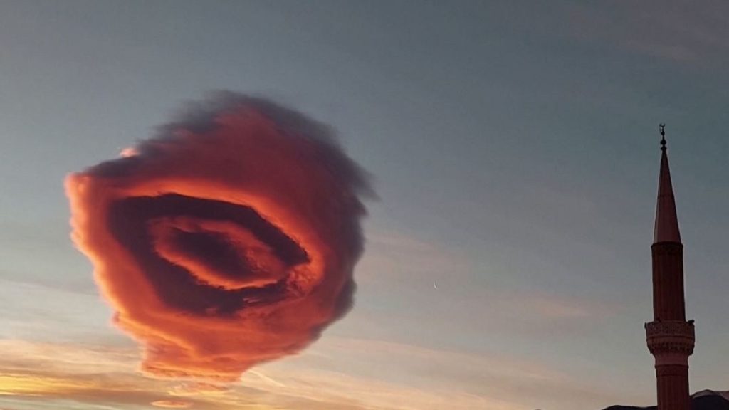 মেঘের এক বিস্ময়কর গঠনের দেখা মিলেছে তুরস্কের আকাশে। বৃহস্পতিবার (১৯ জানুয়ারি) সকালে বিরল এই ইউএফও আকৃতির মেঘ দেখা গেছে তুরস্কের বুরসা শহরে। খবর রয়টার্সের।