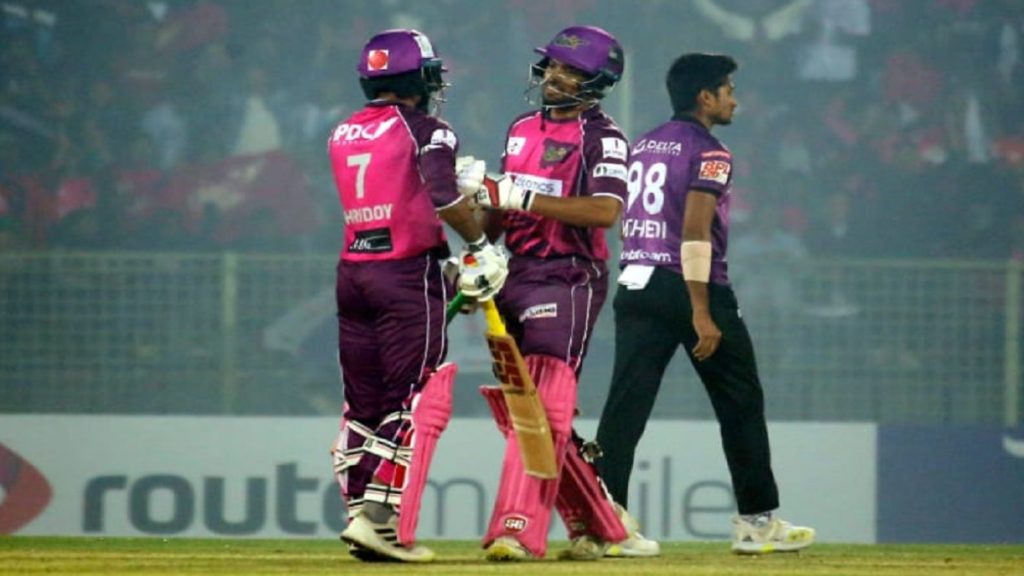 উইকেটে মুশফিকুর রহিম আর রায়ান বার্ল মিলে বলতে গেলে ম্যাচটা বের করে নেন। ২২ বলে ৪৮ রানের বিধ্বংসী জুটি গড়েন তারা। বার্ল ১৬ বলে ৪ বাউন্ডারি আর ৩ ছক্কায় ৪১ রান করে যখন আউট হন ততক্ষণে ম্যাচ হেলে পড়েছে সিলেটের দিকে।