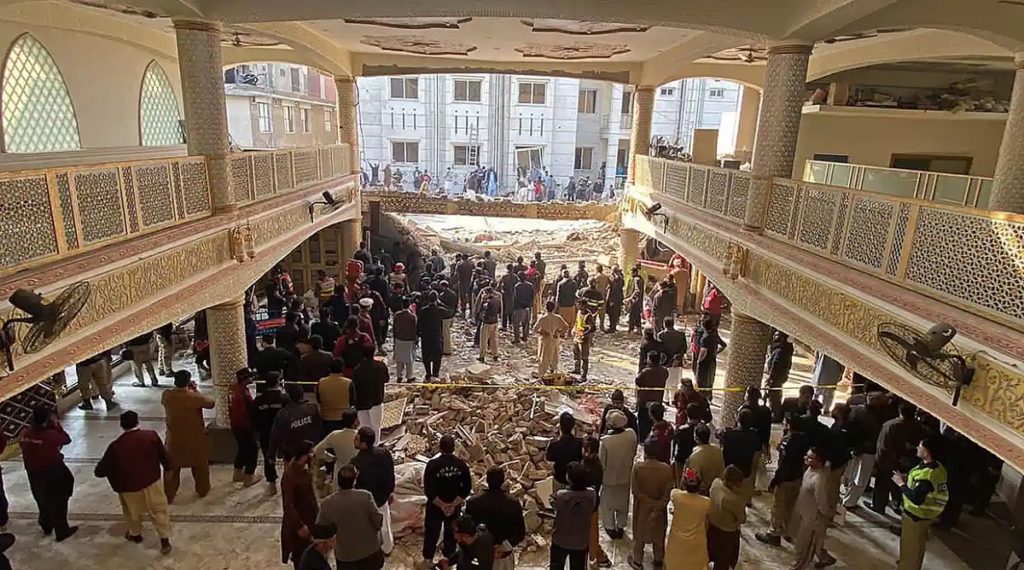 পাকিস্তানের পেশোয়ারের একটি মসজিদে নামাজের সময় হঠাৎ আত্মঘাতী বোমা হামলার ঘটনা ঘটেছে। এ ঘটনায় এখন পর্যন্ত ৩২ জনের মরদেহ উদ্ধার করা হয়েছে, আহত হয়েছেন অন্তত ১৫০ জন। হতাহতের সংখ্যা আরও বাড়তে পারে বলে আশঙ্কা প্রকাশ করেছে কর্তৃপক্ষ। খবর গার্ডিয়ানের।