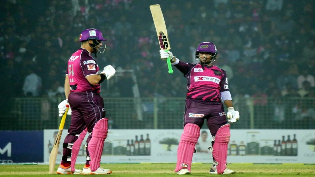 টস হেরে ব্যাট করতে নেমে ধীরগতিতে শুরু করা নাজমুল শান্তকে হারিয়ে বিপাকে পরে সিলেট। আসরের সর্বোচ্চ রানের মালিক শান্ত ৬ রান করে দলীয় ২৫ রানে মার্ক ডেয়ালের বলে সাই হোপের হাতে ক্যাচ দিয়ে ফেরেন।