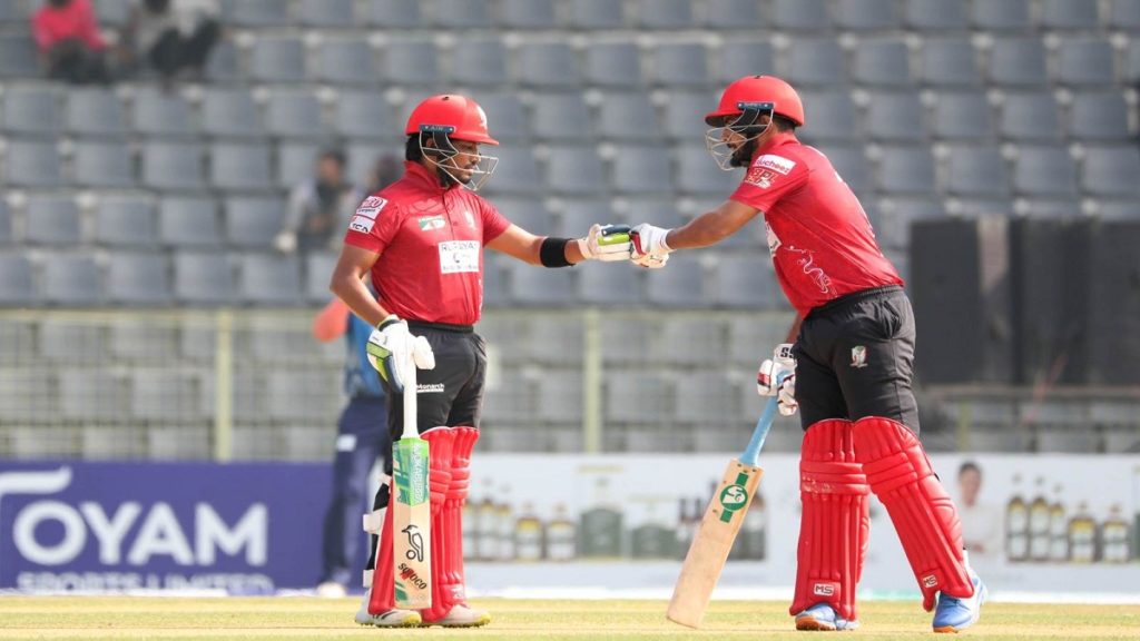 বিপিএলে দিনের প্রথম ম্যাচে হারের বৃত্তে থাকা ঢাকা ডমিনেটর্সের মুখোমুখি হয়েছে সাকিব আল হাসানের ফরচুন বরিশাল। ওপেনার বিজয় ও মিডল অর্ডার ব্যাটার মাহমুদউল্লাহর দায়িত্বশীল ব্যাটিংয়ে নির্ধারিত ২০ ওভার শেষে ৮ উইকেট হারিয়ে ১৫৬ রানের লড়াকু সংগ্রহ পেয়েছে বরিশাল।
