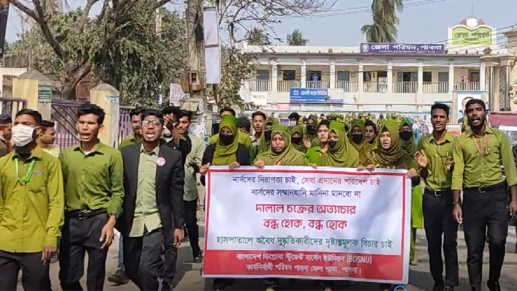 প্রসঙ্গত, মঙ্গলবার (৩১ জানুয়ারি) মেডিসিন ওয়ার্ডের মহিলা ইউনিটে ডিউটিরত পাবনার ইছামতী নার্সিং কলেজের ডিপ্লোমা ইন সাইন্স অ্যান্ড মিডওয়াইফারির দ্বিতীয় বর্ষের শিক্ষার্থী রাজা হোসেনকে সাদ্দাম হোসেন নামের হাসপাতালের এক দালাল শারীরিকভাবে লাঞ্ছিত করে। পরে রাত থেকে কর্মবিরতি শুরু করে হাসপাতালে ইন্টার্ন নার্সরা।