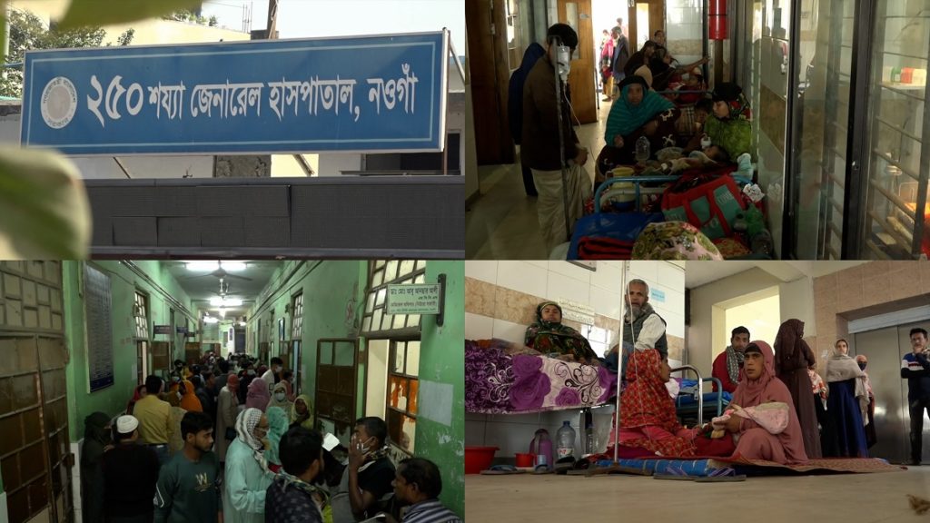 স্বাস্থ্য অধিদপ্তরের মূল্যায়নে ২০২২ সালের তালিকায় সেবা দেয়ার শীর্ষে নওগাঁ জেনারেল হাসপাতাল। তাদের হিসাবে, বহিঃর্বিভাগে গড়ে দেড় হাজার মানুষ সেবা নেয় এখানে, ভর্তি প্রতিদিন অন্তত আড়াইশ রোগী। প্রায় ৩৫ লাখ মানুষের ভরসাস্থল এ হাসপাতাল। বিপরীতে অবস্থা বেহাল। মিলছে না ওষুধ ও প্রত্যাশিত চিকিৎসা। সবচেয়ে বড় সংকট মুমূর্ষ রোগী ও জরুরি চিকিৎসা সেবায়।