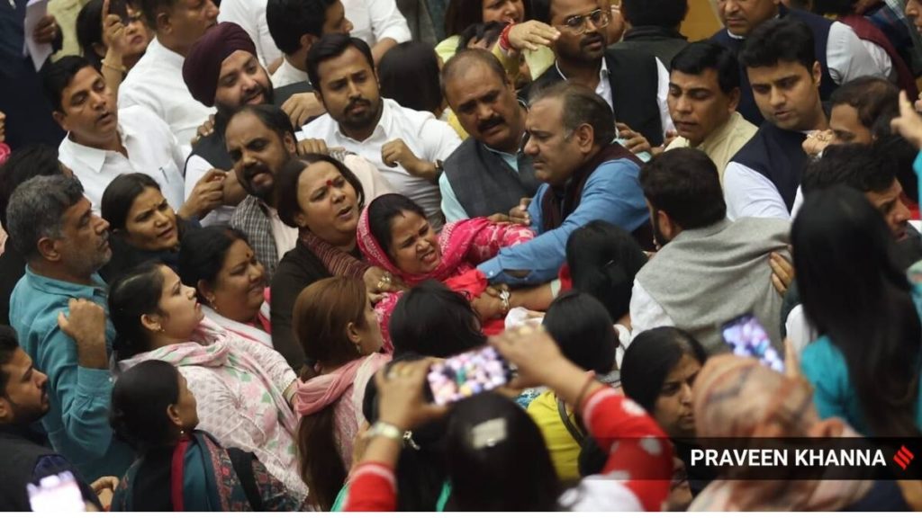 শুক্রবার (২৪ ফেব্রুয়ারি) এই ঘটনা ঘটে। ৬ সদস্যের পৌর কমিটি গঠনে ভোটের সময় দিল্লির মেয়র একটি ভোট বাতিল ঘোষণা করেন। সাথে সাথেই শুরু হয় তুমুল উত্তেজনা। মেয়রের বিরুদ্ধে স্লোগান দিতে শুরু করেন বিজেপি কাউন্সিলররা। একপর্যায়ে শুরু হয় দুই পক্ষের মধ্যে হাতাহাতি। নতুন মেয়র শেলি ওবেরয়ের দিকেও তেড়ে যান বিক্ষুব্ধ বিজেপি কাউন্সিলররা।