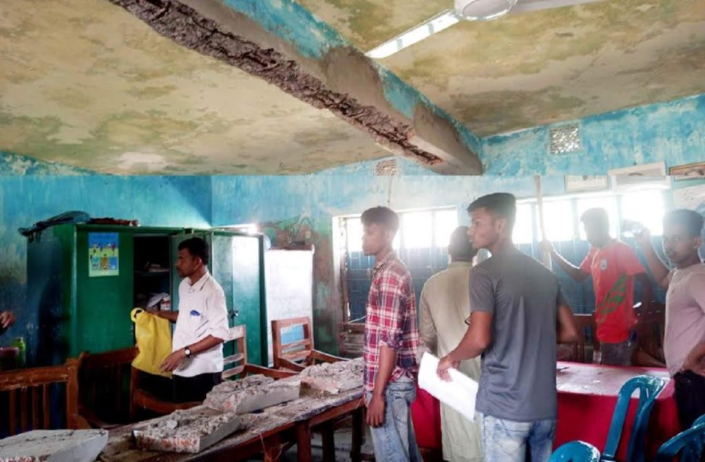 পটুয়াখালীর রাঙ্গাবালীতে একটি বিদ্যালয়ে শিক্ষক-ম্যানেজিং কমিটির মিটিং চলাকালীন ছাদের নিচের ভিমের অংশের পলেস্তারা আচমকা খসে পড়ায় আতঙ্কে রয়েছেন ওই বিদ্যালয়ের শিক্ষক ও শিক্ষার্থীরা।