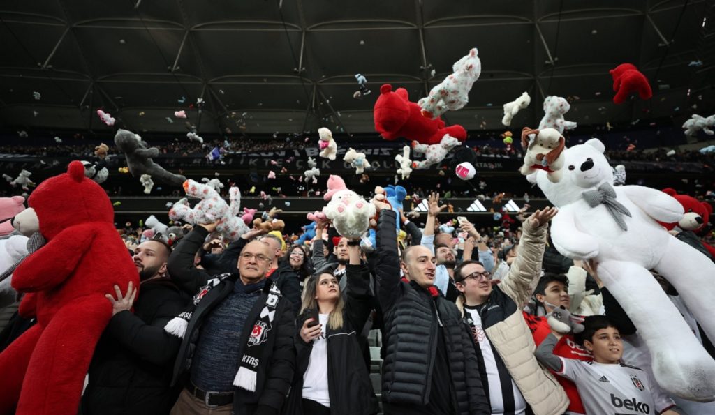 তুরস্কে ভূমিকম্পে ক্ষতিগ্রস্ত অসহায় শিশুদের সাহায্য করতে ব্যতিক্রমী এক আয়োজন ছিল দেশটির ফুটবল লিগে। আন্তালিয়াস্পোরের বিপক্ষে বেসিকতাসের ভক্তরা অসহায় শিশুদের জন্য নিয়ে আসা টেডি ও খেলনা নিক্ষেপ করেছে মাঠে।